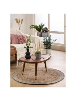 Westwing Collection Runder Jute-Teppich Shanta mit mintgrünem Rand, handgefertigt, Ø 100 cm (Größe XS)