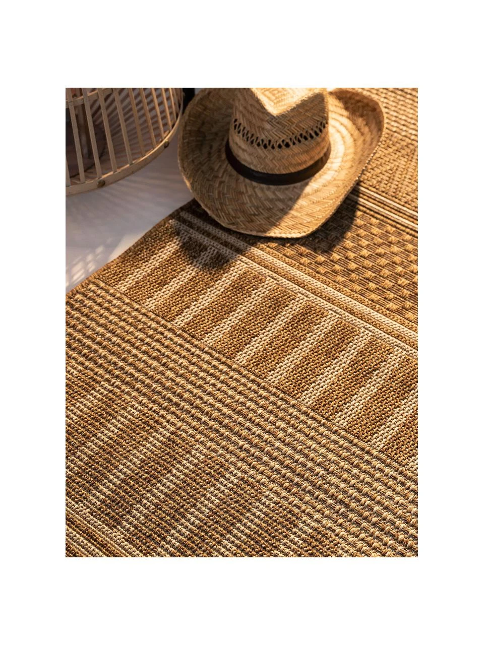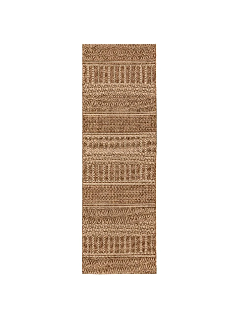Dieser Teppich ist ein wahrer Allrounder: er schafft wohnliche Atmosphäre unter freiem Himmel, sorgt aber auch in stark beanspruchten Innenräumen wie Küche und Flur für einen Hauch Gemütlichkeit.