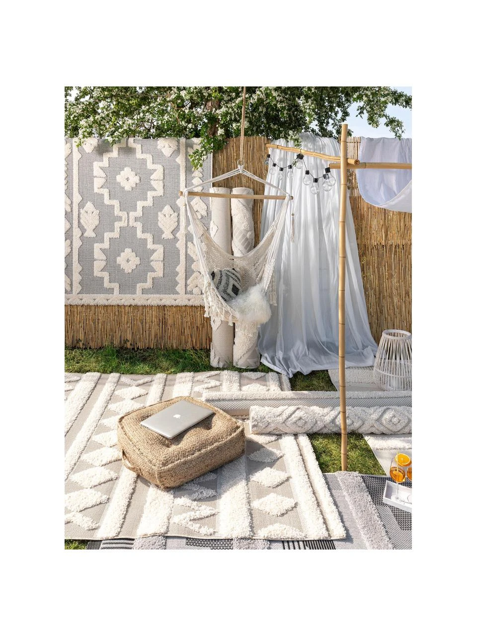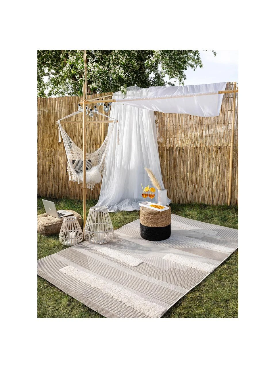 Dieser Teppich ist ein wahrer Allrounder: er schafft wohnliche Atmosphäre unter freiem Himmel, sorgt aber auch in stark beanspruchten Innenräumen wie Küche und Flur für einen Hauch Gemütlichkeit.