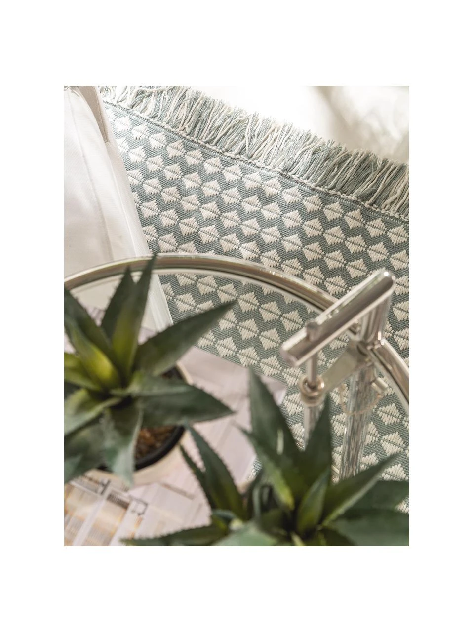 Dieser Teppich ist ein wahrer Allrounder: er schafft wohnliche Atmosphäre unter freiem Himmel, sorgt aber auch in stark beanspruchten Innenräumen wie Küche und Flur für einen Hauch Gemütlichkeit.