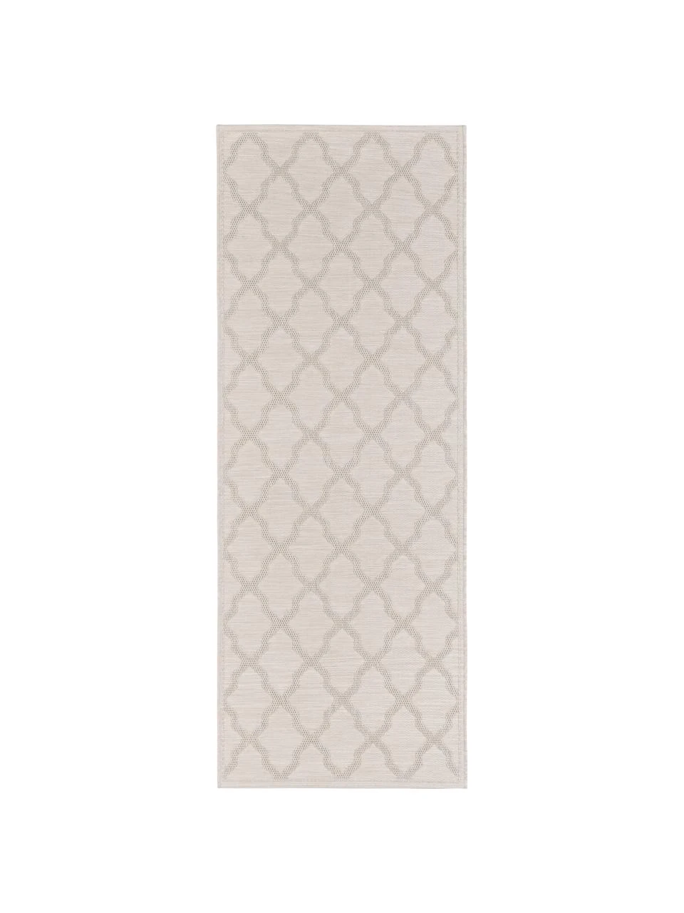 Dieser Teppich ist ein wahrer Allrounder: er schafft wohnliche Atmosphäre unter freiem Himmel, sorgt aber auch in stark beanspruchten Innenräumen wie Küche und Flur für einen Hauch Gemütlichkeit.