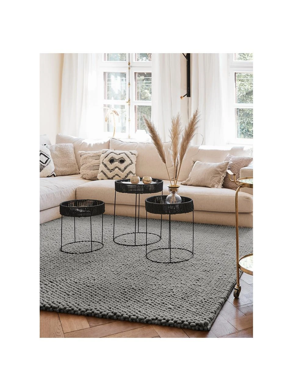 Bei Wollteppichen können sich in den ersten Wochen der Nutzung Fasern lösen, dies reduziert sich durch den täglichen Gebrauch und die Flusenbildung geht zurück.