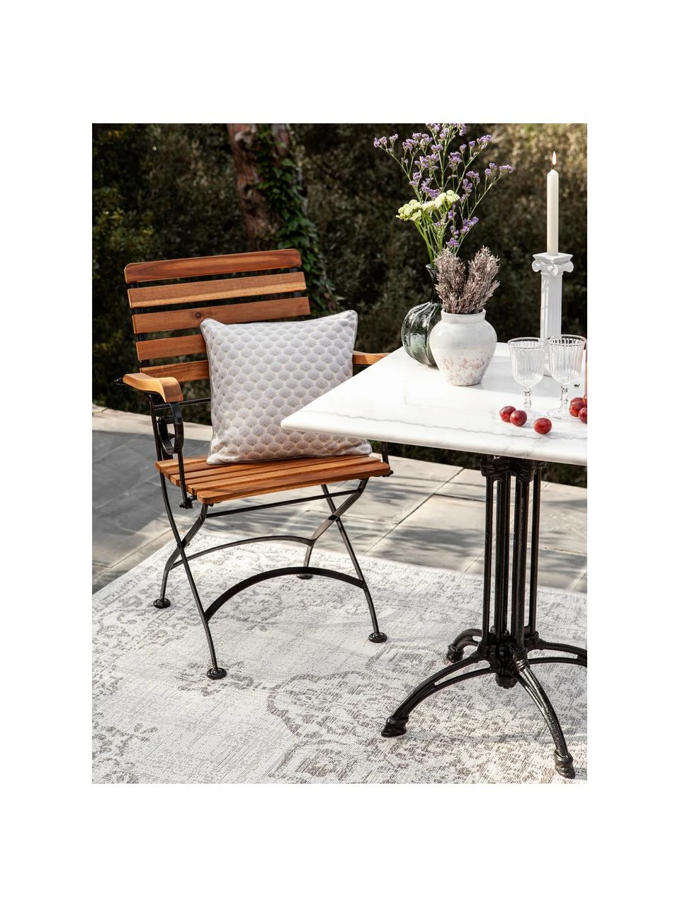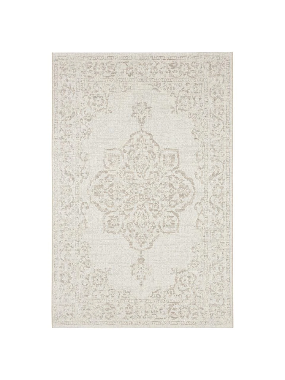 Dieser Teppich ist ein wahrer Allrounder: er schafft wohnliche Atmosphäre unter freiem Himmel, sorgt aber auch in stark beanspruchten Innenräumen wie Küche und Flur für einen Hauch Gemütlichkeit.