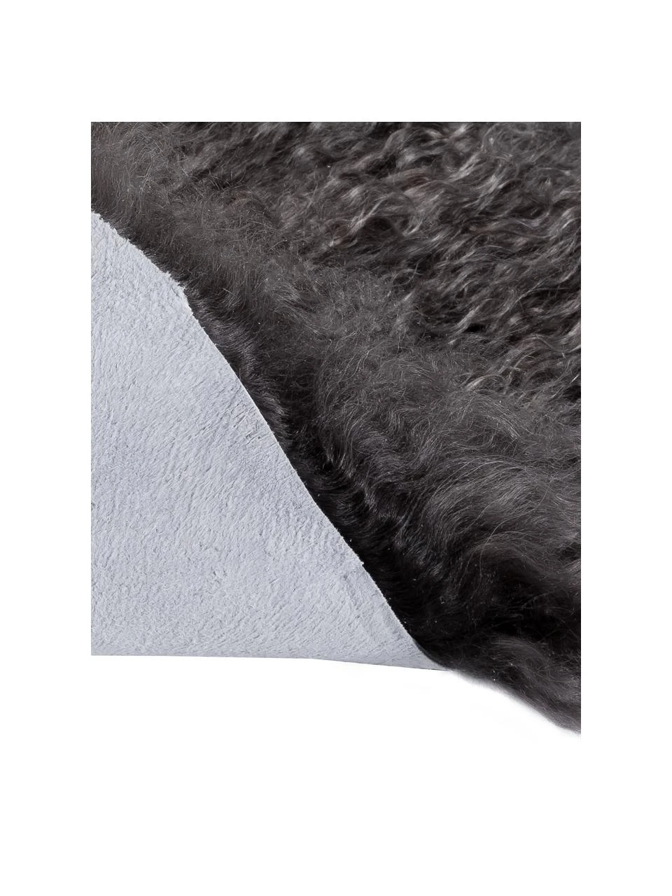 Fein gelocktes, dünnes Lammfell mit 12 cm langem Fell. Für dekorative Zwecke und zum Wärmen, aber nicht als Sitzpolster geeignet