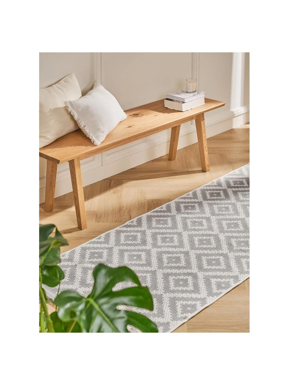 Dieser Teppich ist ein wahrer Allrounder: er schafft wohnliche Atmosphäre unter freiem Himmel, sorgt aber auch in stark beanspruchten Innenräumen wie Küche und Flur für einen Hauch Gemütlichkeit.