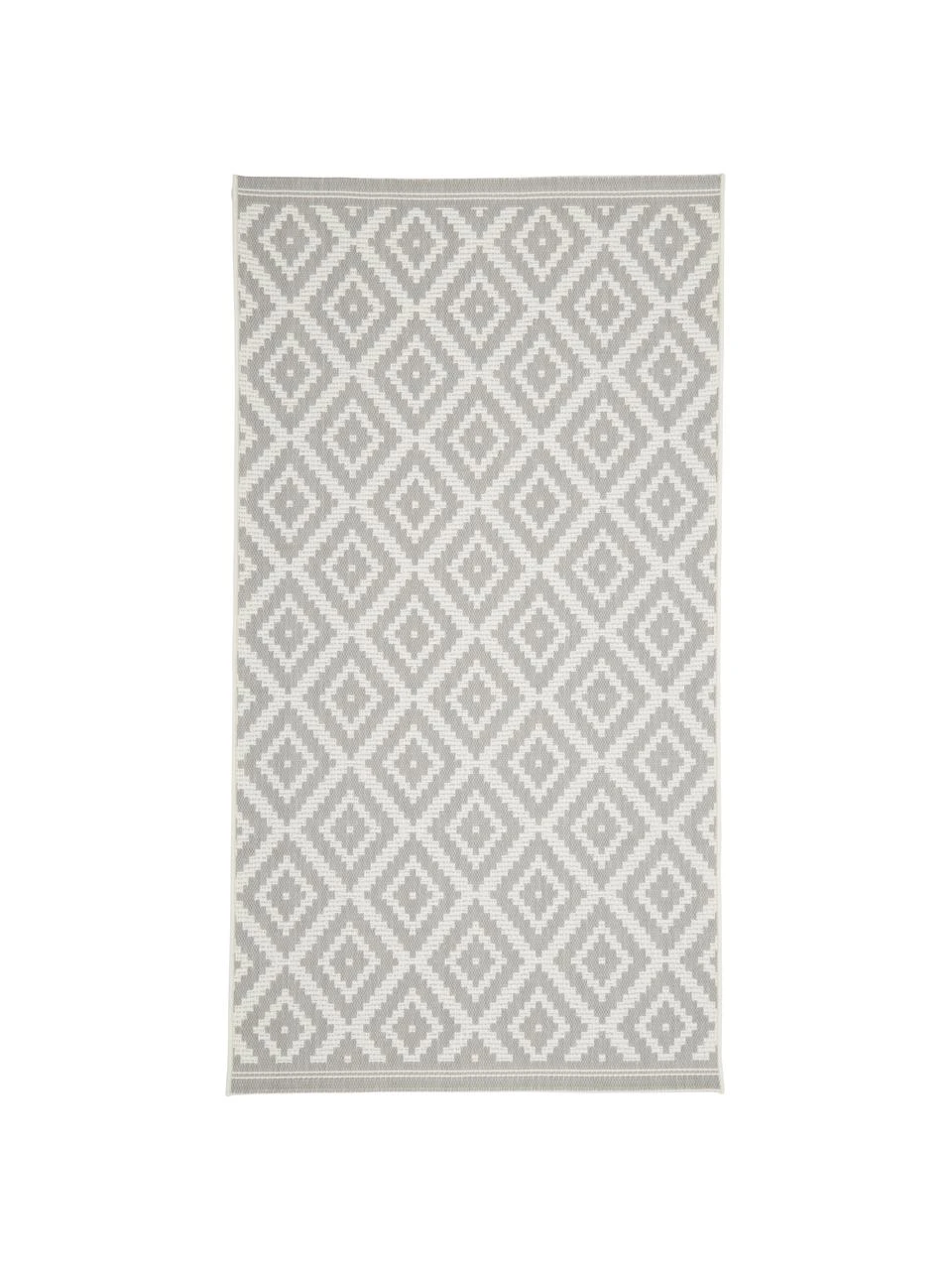 Dieser Teppich ist ein wahrer Allrounder: er schafft wohnliche Atmosphäre unter freiem Himmel, sorgt aber auch in stark beanspruchten Innenräumen wie Küche und Flur für einen Hauch Gemütlichkeit.