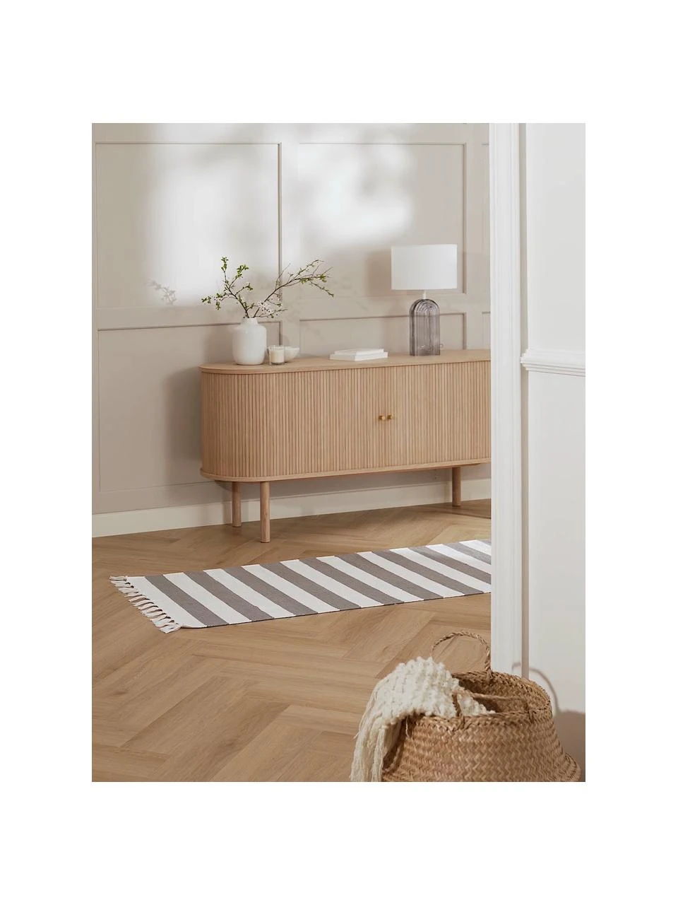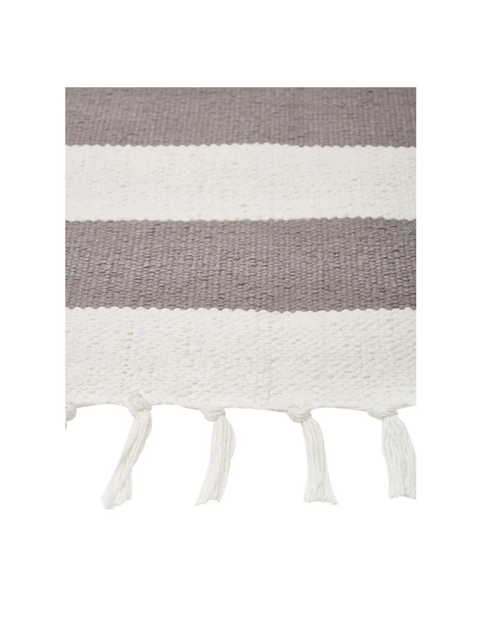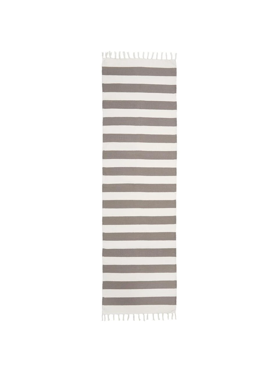 – Flachgewebter Baumwollläufer mit Blockstreifen und Fransen