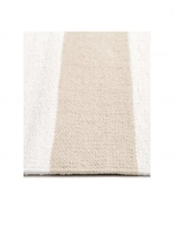 – Flachgewebter Baumwollteppich mit Blockstreifen und Fransen