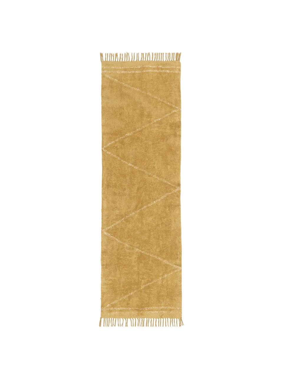 – Handgewebter und -getufteter Baumwollläufer mit Fransen