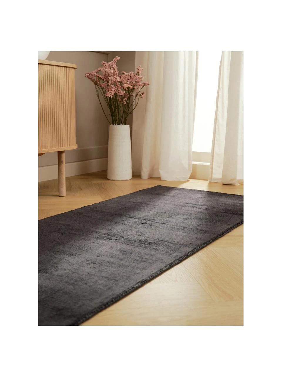 Bitte berücksichtigen Sie, dass Viskoseteppiche je nach Lichteinfall und Richtung, in der der Flor liegt, farblich heller oder dunkler scheinen.