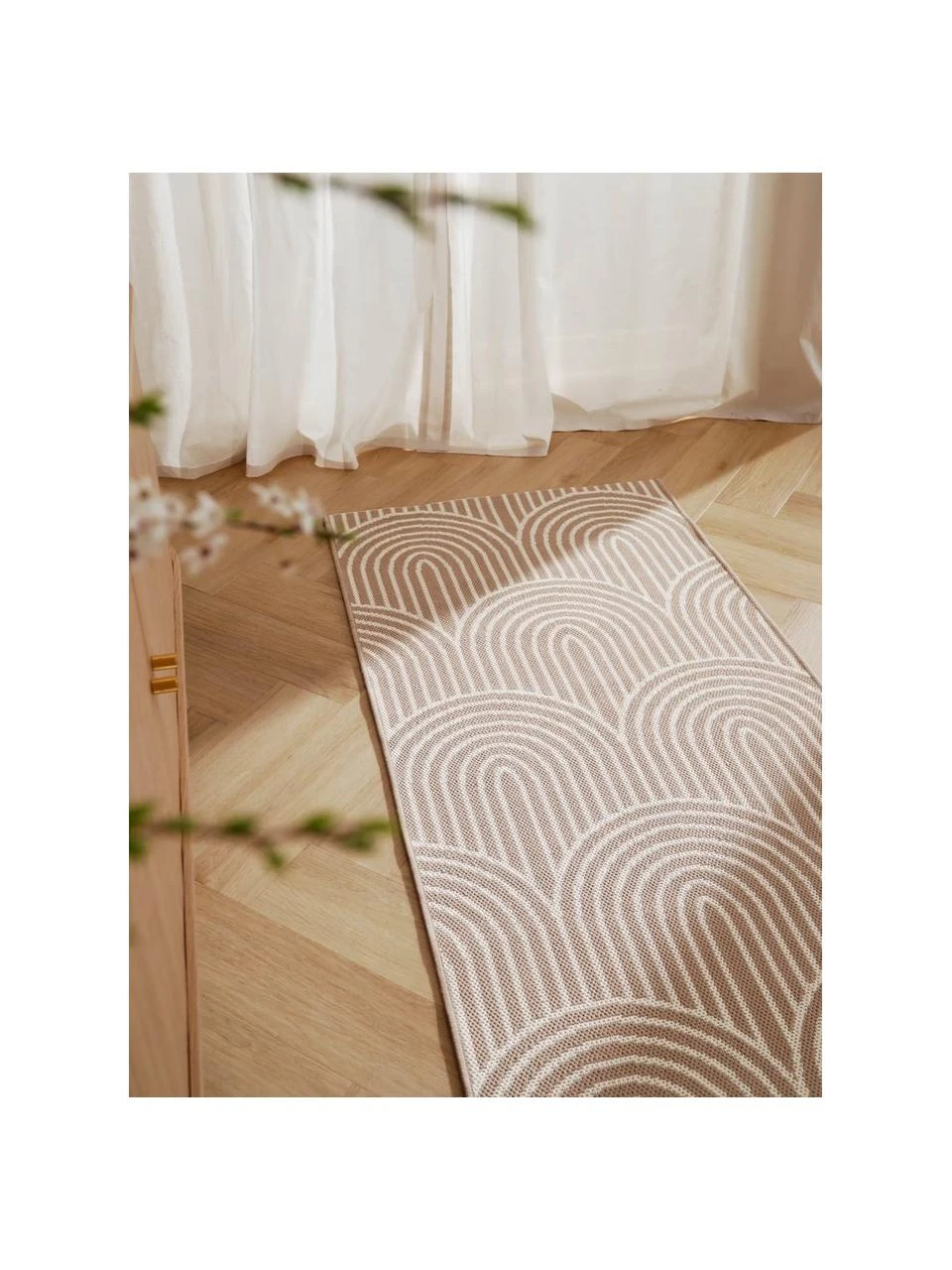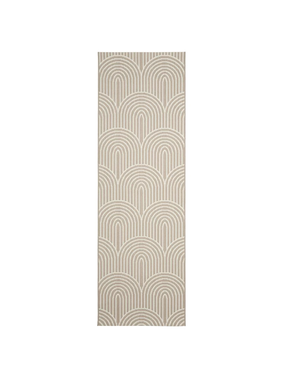 Dieser Teppich ist ein wahrer Allrounder: er schafft wohnliche Atmosphäre unter freiem Himmel, sorgt aber auch in stark beanspruchten Innenräumen wie Küche und Flur für einen Hauch Gemütlichkeit.